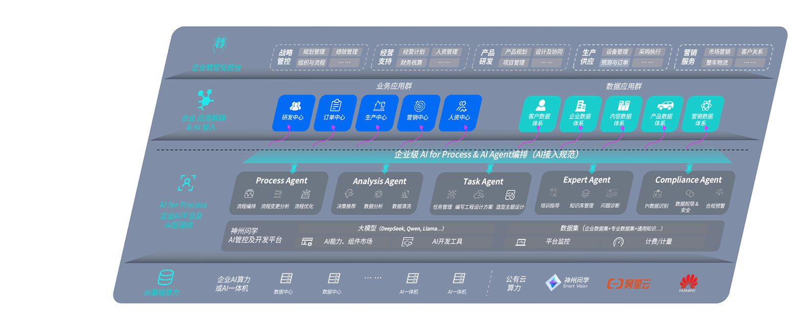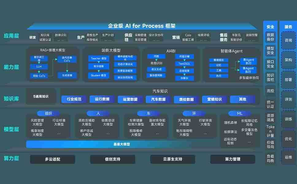 端到端的一站式AI工作空间深度融合了从企业战略规划到日常经营的全流程业务板块,,,,定向解决车企内部领域多、、部门多、、链条长、、、场景碎片化等难题,,支持车企快速构建以AI为核心的生产力写作体系,,实现任务执行与AI能力的无缝集成与交互